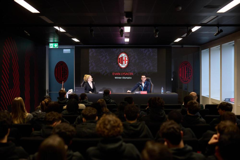 L’evento, che si è svolto nella Sala Stampa di Casa Milan, ha riunito i giovani calciatori e le giovani calciatici del Convitto del Club rossonero per un momento di confronto e ispirazione incentrato sui valori che uniscono lo sport d’élite e il movimento olimpico: impegno, resilienza e crescita personale.