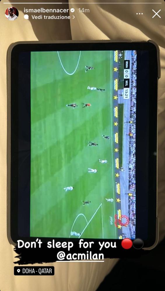Tra i tanti tifosi milanisti che stanno seguendo Real Madrid-Milan, vi è anche un... calciatore! Si tratta di Ismael Bennacer, infortunato, che sta seguendo il match dal Qatar: "Non si dorme per te, AC Milan", il messaggio dell'algerino su Instagram.