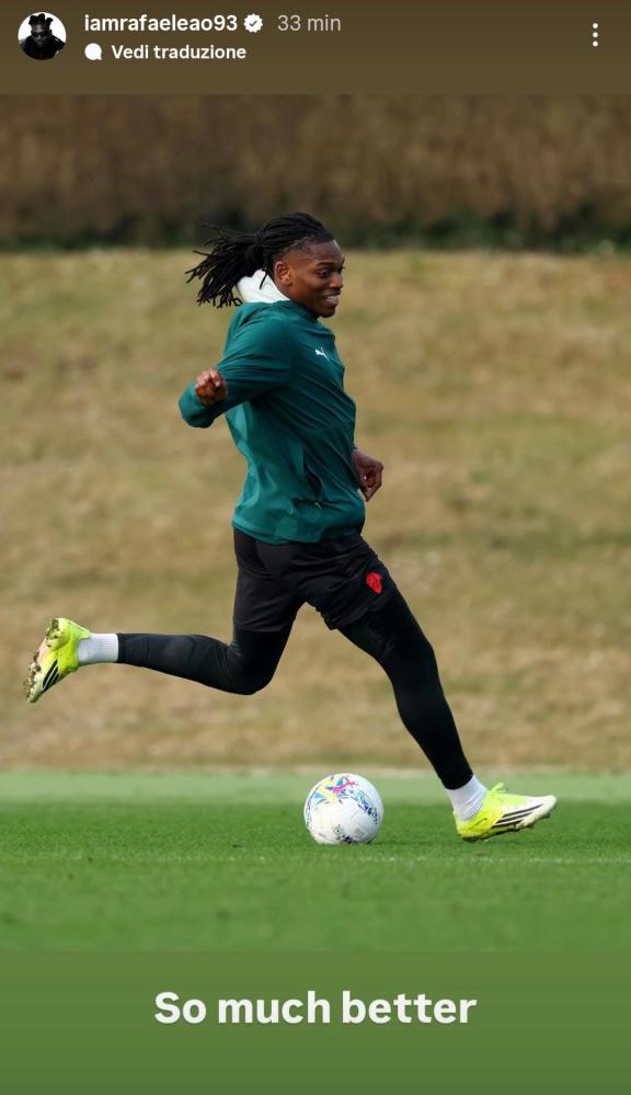 Prima del Bologna Allegri ha auspicato che questi 9 giorni di "pausa" fino alla partita col Pisa serviranno per riavere un Leao in una condizione quantomeno buona. Alla ripresa degli allenamenti il portoghese ha ripreso ad allenarsi con la squadra e ci sono buone sensazioni sulle sue condizioni, tant'è che è lui stesso su Instagram a fornire un aggiornamento: "Va molto meglio".
