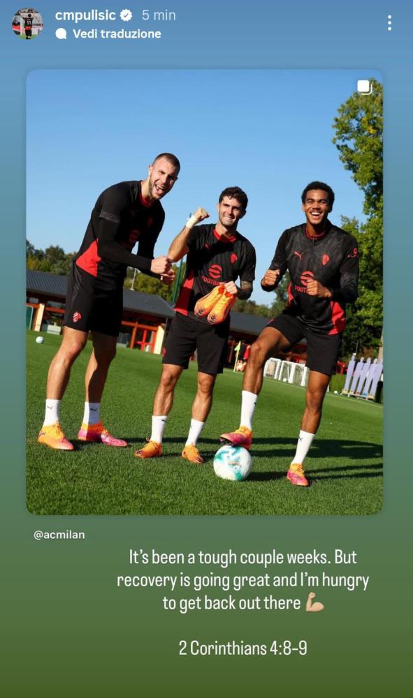 Nel frattempo il rossonero rassicura tutti su come sta andando il recupero con una stories Instagram: "Sono state un paio di settimane difficili ma il recupero sta andando alla grande e non vedo l'ora di tornare".