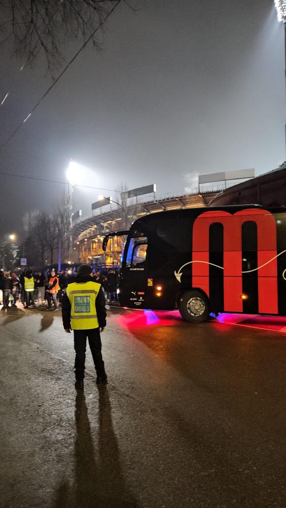 Il pullman del Milan è arrivato in questi istanti allo stadio Dall'Ara, dove questa sera affronterà il Bologna di Vincenzo Italiano. Trasferta scivolosa e difficile per Allegri, che non avrà a disposizione Saelemaekers, Pulisic ed il solito Gimenez.