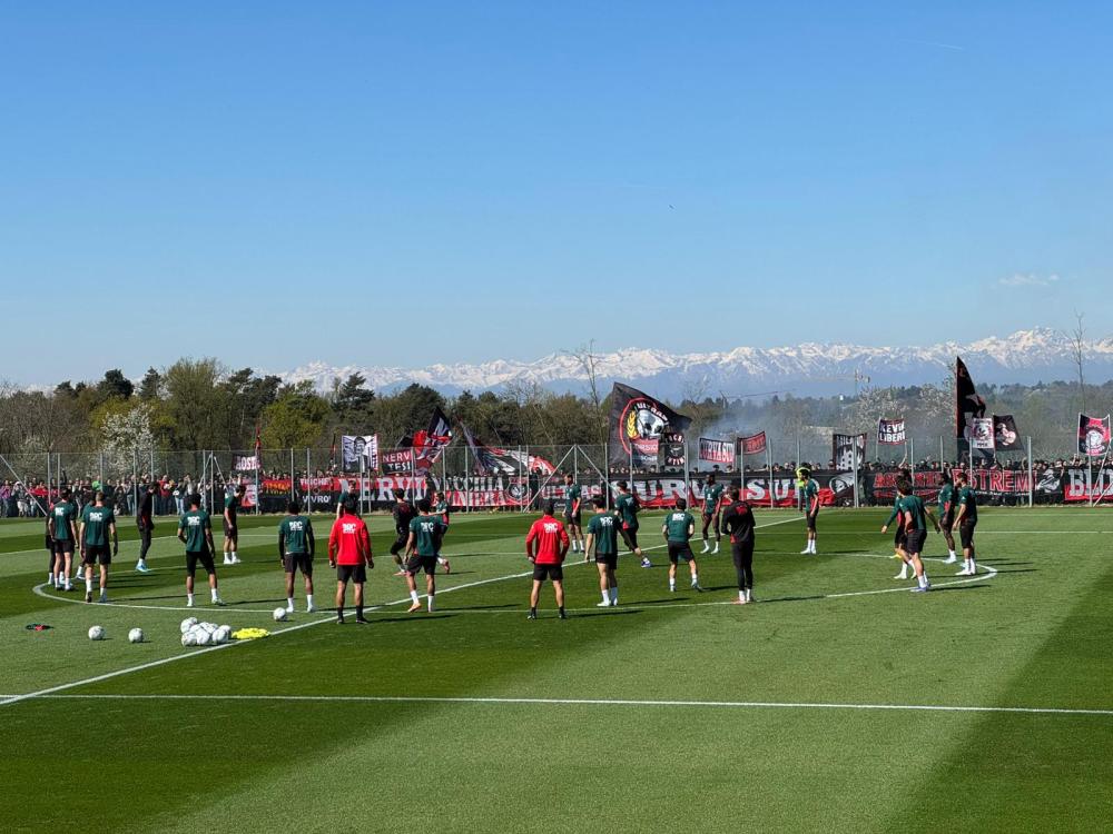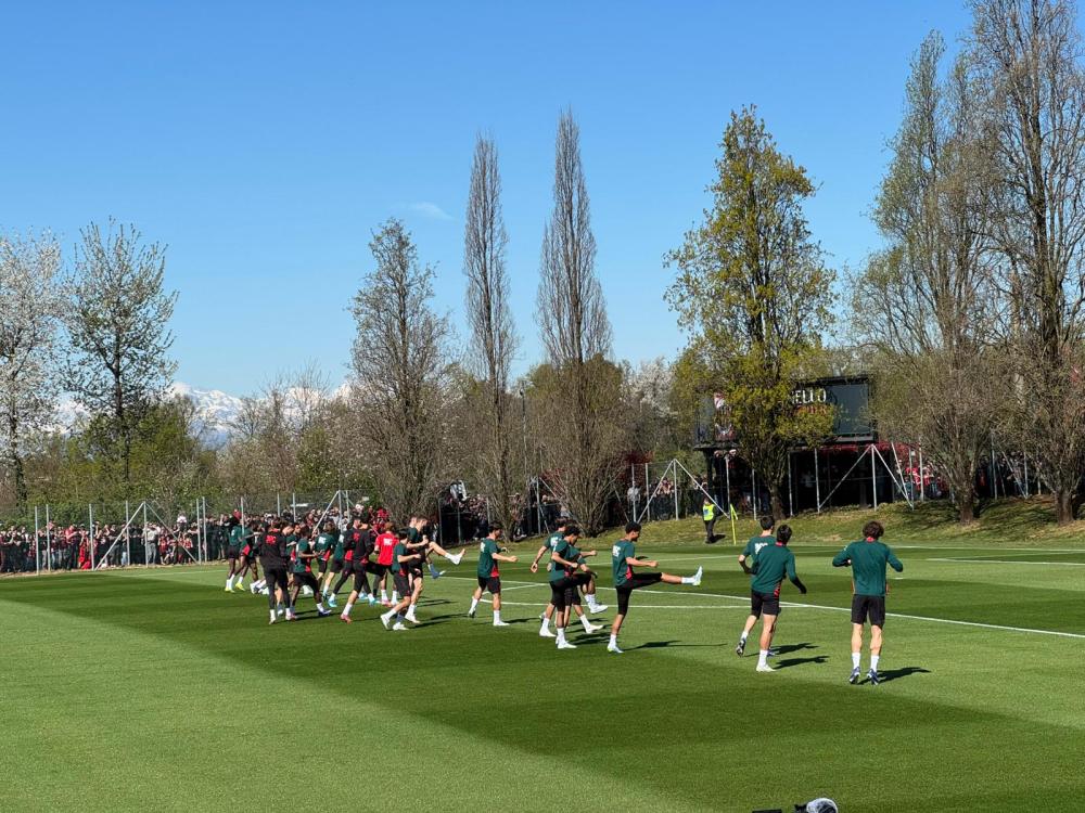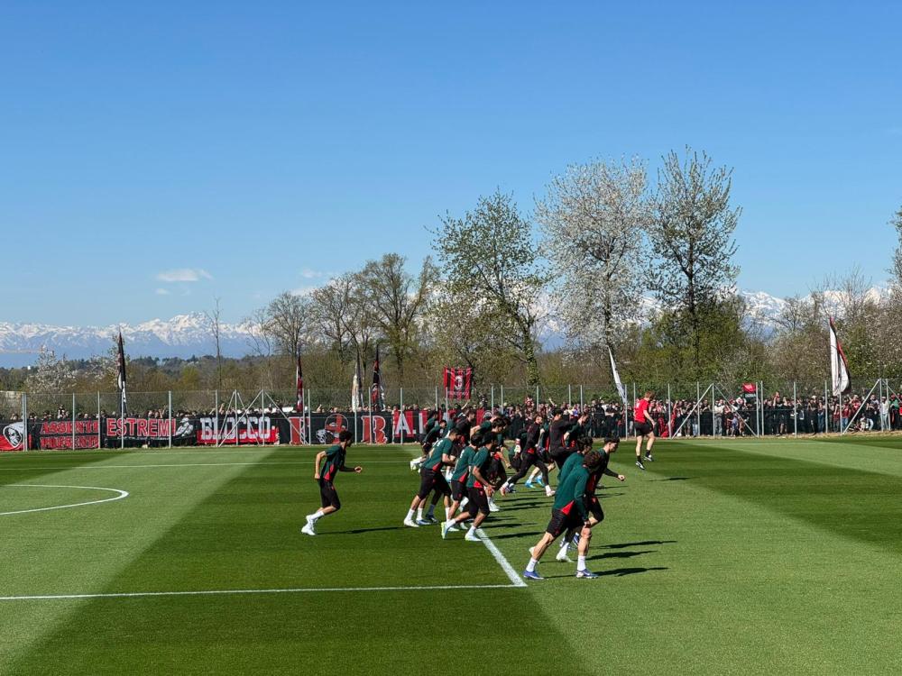 I rossoneri stanno lavorando davanti ai tanti tifosi presenti oggi a Carnago che stanno riservando tanti cori di sostegno alla formazione di Max Allegri.