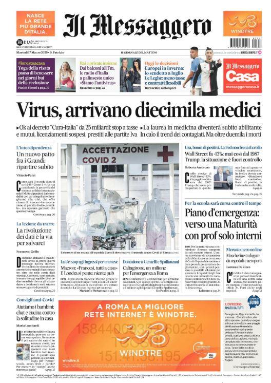 Il Messaggero in edicola questa mattina utilizza questo titolo nel taglio alto della sua prima pagina: "Europei in inverno: lo scudetto a luglio". Oggi l'Uefa - si legge all'interno a pagina 27 - ascolterà le leghe europee che sono compatte nel chiedere la fine dei campionati anche a luglio. L'Europeo invece sarà disputato nel 2021 oppure a novembre.