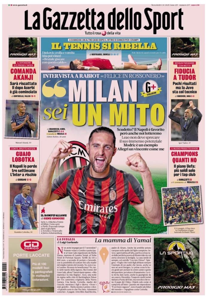 La Gazzetta apre con le parole di Rabiot: "Milan, sei un mito"